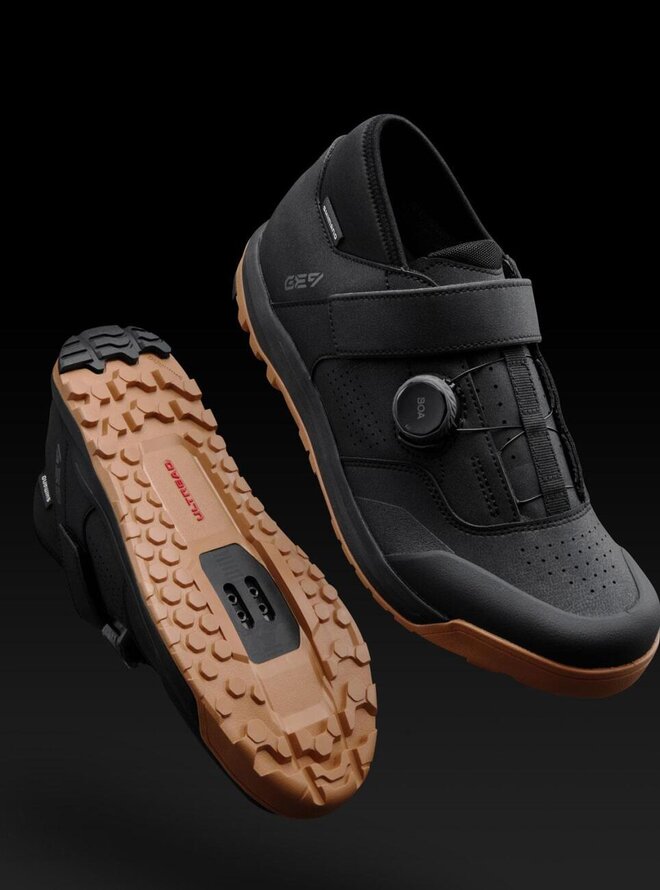 Prémiové závodní gravity tenisky pro náročné sjezdy a boj o každou vteřinu. GE900HS (Hot Seat), zkonstruovaný pro úplnou kontrolu jezdce a maximální jistotu v technickém terénu, je tou správnou volbou pro profesionální enduro a downhill závodníky – nebo pro každého, kdo chce na trailu posouvat hranice. Mezipodešev Force Control s extrémní tuhostí pro nekompromisní výkon při sjezdu. Přepracovaná karbonem vyztužená nylonová mezipodešev je o 25 % tvrdší než mezipodešev GE900 a poskytuje tužší a stabilnější platformu pro šlapání. Systém BOA® Fit s Li2F kolečkem včetně krytu proti náhodnému uvolnění. Gumová směs SHIMANO ULTREAD GE optimalizovaná pro Enduro a přilnavý vzorek zajišťují spolehlivé šlapání na kole i mimo něj. Optimalizovaná neoprenová manžeta obepíná kotník a zabraňuje pronikání kamenů a nečistot. Systém BOA® Fit s plochým šněrováním a plochými švy zabraňujícími zamotávání na dráze. Tenisky jsou kompatibilní s botami SPD. Hmotnost páru třetin je ve velikosti 43 872g. Doporučujeme si nohu změřit a objednat velikost dle tabulky velikostí - většinou je potřeba objednat o jednu velikost větší, než běžně nosíte.Detaily