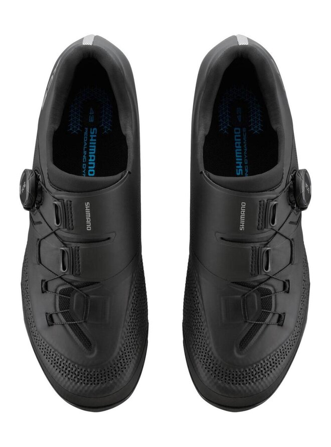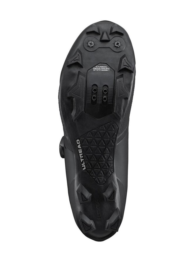 Robustní XC boty pro začínající závodníky, kteří oceňují vysoký výkon a styl. Systém BOA® s L6C, pogumovaným kolečkem a ochranným krytem umožňuje snadné nastavení za běhu. Mezipodešev z částečně recyklovaného nylonu s vyztužením uhlíkovými vlákny. Lehká pryžová podrážka SHIMANO ULTREAD XC poskytuje vynikající přilnavost během závodění. Špička a mezipodešev vyrobeny z 19 % (hmotnostních) recyklovaného materiálu. Elegantní perforovaný svršek ze syntetické kůže s novým vzorem zapínání. Nastavitelné gripy s hroty – přidejte hroty na prsty pro extra přilnavost na kluzkých stezkách. Kompatibilní se zátkami SPD. Hmotnost: od 620g (č. 43). Doporučujeme si nohu změřit a objednat velikost dle tabulky velikostí - většinou je potřeba objednat o jednu velikost větší, než běžně nosíte. Tenisky jsou navrženy se širším kopytem (označeno jako velikost E).Detaily