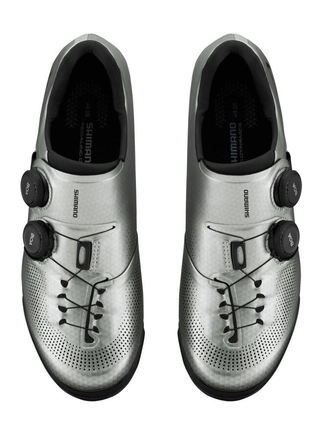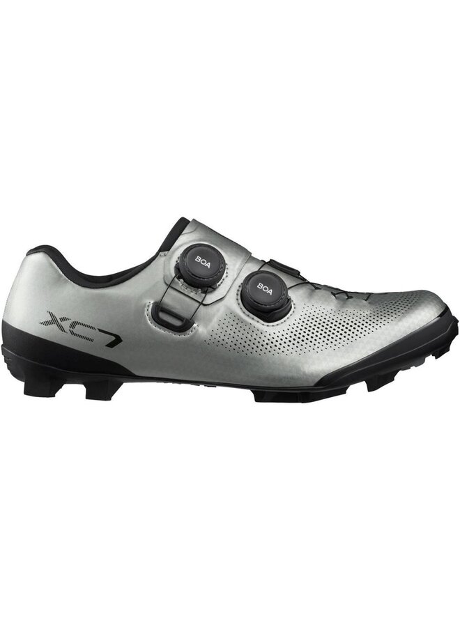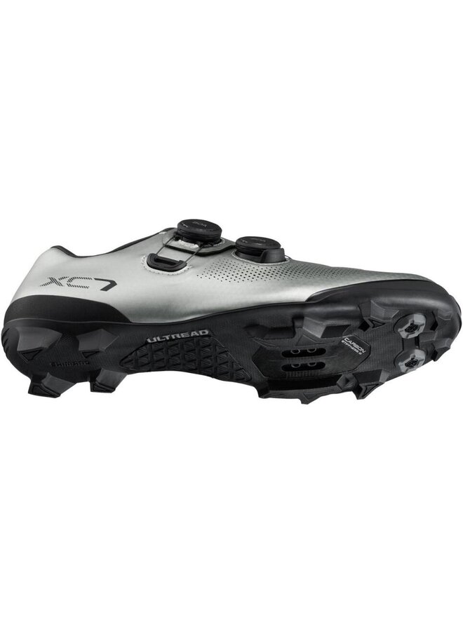 SH-XC703 jsou XC závodní boty, které jsou extrémně pohodlné, lehké a navržené pro maximální výkon při šlapání za všech podmínek. Elegantní ploché křížové šněrování zajišťuje elegantní střih přední části chodidla. Systém BOA® se dvěma kompaktními koly L6Z pro přesné přizpůsobení. Výjimečně lehká a tuhá mezipodešev vyztužená karbonem pro optimální přenos síly. Lehká pryžová podrážka SHIMANO ULTREAD XC poskytuje bezkonkurenční trakci při zdolávání náročného terénu. Kompatibilní se zátkami SPD. Hmotnost od 644g (č. 43). Doporučujeme si nohu změřit a objednat velikost dle tabulky velikostí - většinou je potřeba objednat o jednu velikost větší, než běžně nosíte. Tenisky jsou dostupné i ve verzi se širším kopytem - velikost je označena písmenem E.Detaily