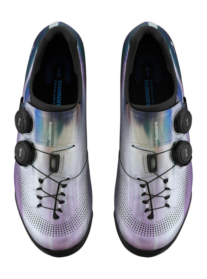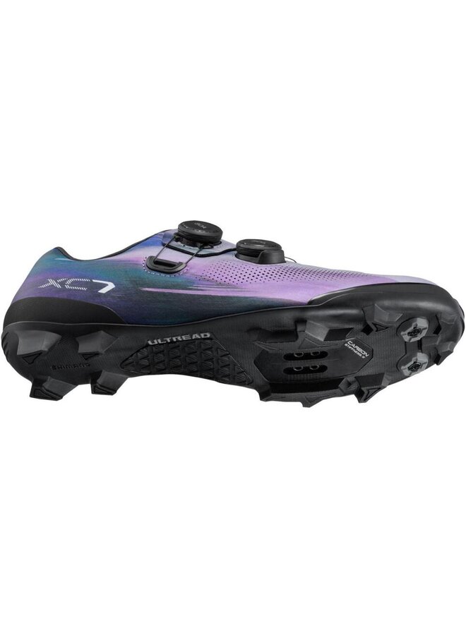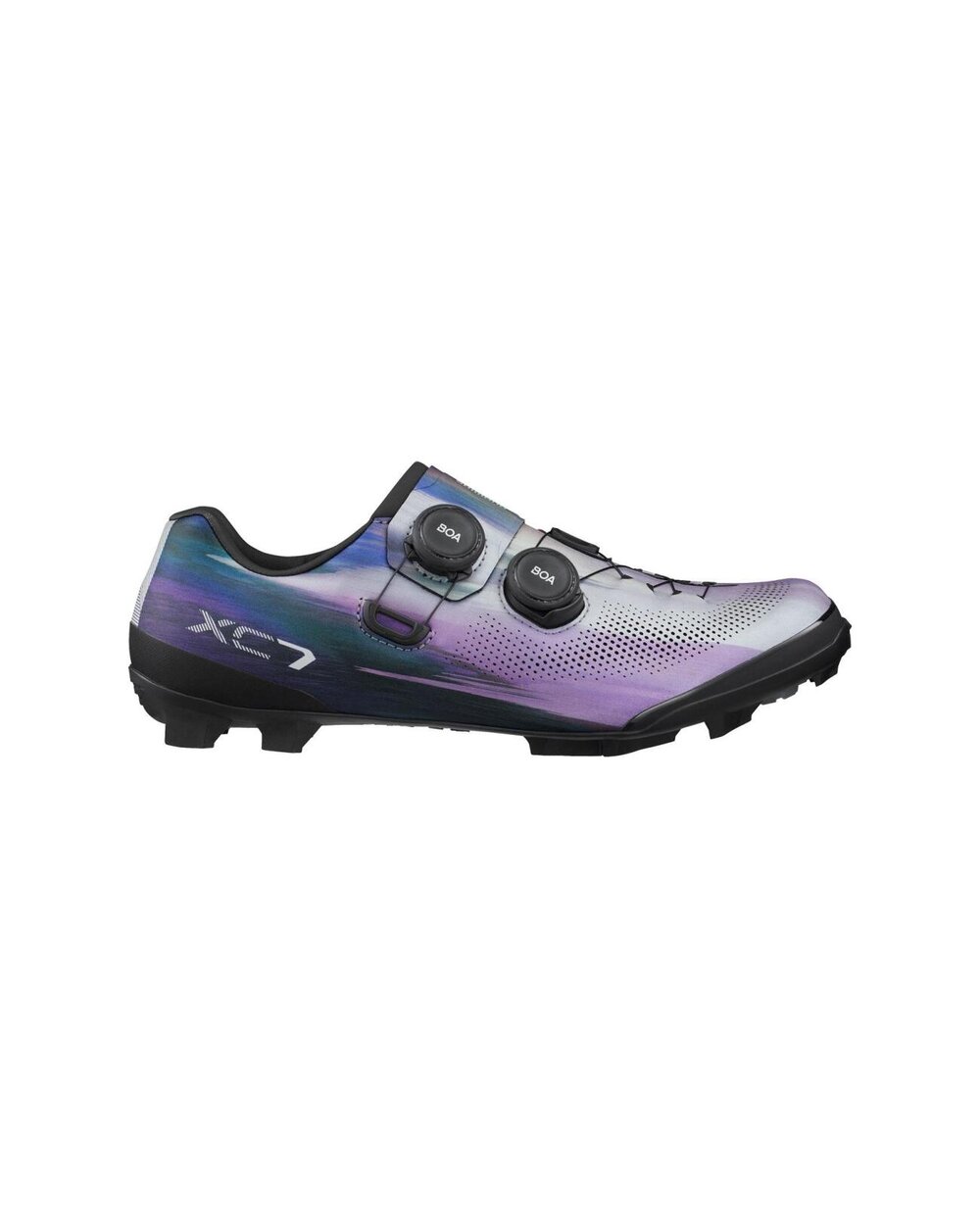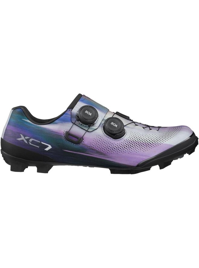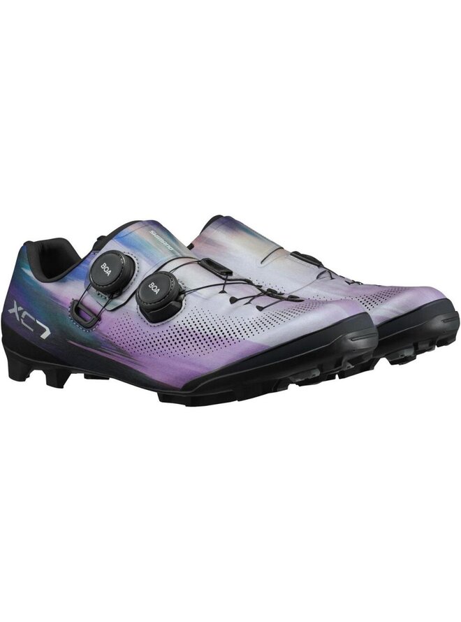 SH-XC703 jsou XC závodní boty, které jsou extrémně pohodlné, lehké a navržené pro maximální výkon při šlapání za všech podmínek. Elegantní ploché křížové šněrování zajišťuje elegantní střih přední části chodidla. Systém BOA® se dvěma kompaktními koly L6Z pro přesné přizpůsobení. Výjimečně lehká a tuhá mezipodešev vyztužená karbonem pro optimální přenos síly. Lehká pryžová podrážka SHIMANO ULTREAD XC poskytuje bezkonkurenční trakci při zdolávání náročného terénu. Kompatibilní se zátkami SPD. Hmotnost od 644g (č. 43). Doporučujeme si nohu změřit a objednat velikost dle tabulky velikostí - většinou je potřeba objednat o jednu velikost větší, než běžně nosíte. Tenisky jsou dostupné i ve verzi se širším kopytem - velikost je označena písmenem E.Detaily