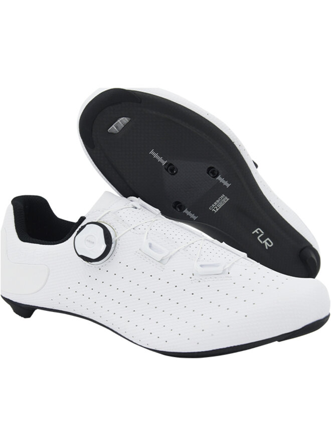 Silniční boty FLR F-5 Carbon jsou určeny pro ambiciózní jezdce, kteří hledají kombinaci pohodlí, tuhosti a efektivního přenosu síly. Lehká a pevná karbonová podešev R500 zajišťuje maximální tuhost pro dokonalý přenos energie do pedálů, pohodlný svršek z mikrovlákna a strategicky umístěné ventilační otvory zaručují pohodlí i při dlouhých jízdách. Díky systému zapínání ATOP si snadno upravíte obuv přesně podle svých potřeb.