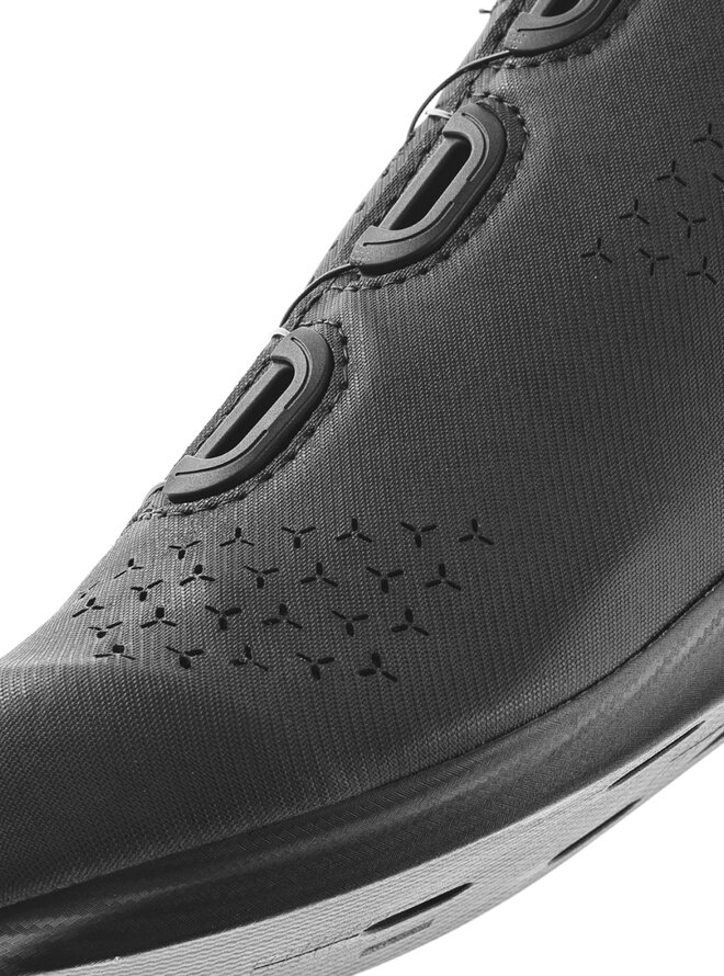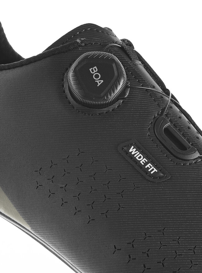 G.SPRINT+ je silniční cyklistická obuv, která hladce kombinuje klíčové prvky z naší profesionální řady, nyní optimalizované pro každého cyklistu. Materiál z mikrovlákna je perforovaný, aby optimalizoval prodyšnost a zlepšil ventilaci vzduchu a udržoval nohy v chladu a suchu po celou dobu jízdy. Vnitřek boty je doplněn síťovinou, která poskytuje chodidlu trvalou oporu a zvyšuje jeho stabilitu. Upevňovací systém vybavený mikronastavitelným systémem BOA L6 zajišťuje rovnoměrné a bezpečné upevnění bez jakýchkoli tlakových bodů. Technologie COMFORT FIT TONGUE obsahuje high-tech tlumicí vrstvu pro větší pohodlí a lepší prodyšnost. Integrovaná protiskluzová patní část zvyšuje stabilitu nohy a kontrolu pro lepší zážitek z jízdy. VLOŽKA EPS TRANSPIRANT se vyznačuje anatomickou podporou, která zvyšuje komfort a efektivitu šlapání. Speciální tvar tenisky pro širokou nohu s vyšším nártem.Detaily