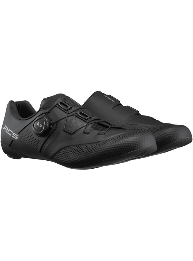 Vysoce výkonné silniční cyklistické boty za skvělou cenu se špičkovou závodní technologií. Prodyšný a lehký svršek poskytuje celkové pohodlí a skvěle sedí, zatímco mezipodešev vyztužená karbonem poskytuje tuhost a stabilitu, kterou byste očekávali od špičkové cyklistické boty. Systém BOA® s kolečkem L6C a systémem šněrování vyvinutý společností SHIMANO. Nylonová mezipodešev vyztužená uhlíkovými vlákny pro vynikající přenos síly. Integrovaná bezešvá mezipodešev a horní konstrukce poskytují vynikající padnutí a stabilitu. Špička a mezipodešev jsou vyrobeny z 23 % (hmotnostních) recyklovaného materiálu. Kompaktní perforovaný svršek ze syntetické kůže s novým systémem zapínání. Kompatibilní se zátkami SPD-SL. Hmotnost od 508g (č. 43). Doporučujeme si nohu změřit a objednat velikost dle tabulky velikostí - většinou je potřeba objednat o jednu velikost větší, než běžně nosíte. Tenisky jsou dostupné i ve verzi se širším kopytem - velikost je označena písmenem E.Detaily