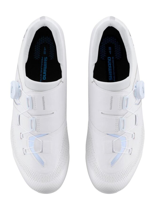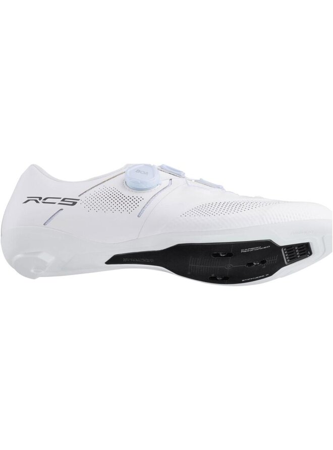 Vysoce výkonné silniční cyklistické boty za skvělou cenu se špičkovou závodní technologií. Prodyšný a lehký svršek poskytuje celkové pohodlí a skvěle sedí, zatímco mezipodešev vyztužená karbonem poskytuje tuhost a stabilitu, kterou byste očekávali od špičkové cyklistické boty. Systém BOA® s kolečkem L6C a systémem šněrování vyvinutý společností SHIMANO. Nylonová mezipodešev vyztužená uhlíkovými vlákny pro vynikající přenos síly. Integrovaná bezešvá mezipodešev a horní konstrukce poskytují vynikající padnutí a stabilitu. Špička a mezipodešev jsou vyrobeny z 23 % (hmotnostních) recyklovaného materiálu. Kompaktní perforovaný svršek ze syntetické kůže s novým systémem zapínání. Kompatibilní se zátkami SPD-SL. Hmotnost od 508g (č. 43). Doporučujeme si nohu změřit a objednat velikost dle tabulky velikostí - většinou je potřeba objednat o jednu velikost větší, než běžně nosíte. Tenisky jsou navrženy se širším kopytem (označeno jako velikost E).Detaily