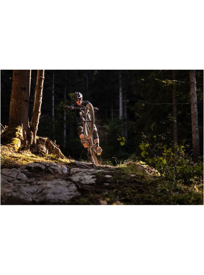 Traily volají: Představujeme zcela nové boty Stamp Trail Lace! Nové boty Stamp Trail Lace jsou výjimečné perfektní kombinací výkonu a dobrodružství - zbrusu nový vzorek podrážky MATCH a lehký a odolný svršek jsou navrženy tak, aby poskytovaly jezdci celodenní komfort a bezkonkurenční výkon. Ať už jedete ze dna horského údolí na vrchol a pak zase zpět dolů nebo ze startovní čáry na pódium, boty Stamp Trail Lace jsou vaším ideálním společníkem. • MATCH COMPOUND - pryžová směs MC2 je optimalizovaná pro přilnavost na platformových pedálech a odolnost při chůzi. Má vysoký grip, skvěle se drží pedálu v jakémkoliv terénu a zároveň skvěle tlumí vibrace. Pro větší výdrž jsou výstupky na podrážce zaoblené. • MATCH OUTSOLE - Podrážka je navržena pro jistou chůzi v náročném terénu. Zkosená špička a pata usnadňují chůzi a speciálně navržený dezén nabízí trakci ve strmém terénu nahoru nebo dolů. • Tuhá nylonová vyztužená podrážka efektivně přenáší sílu při stoupání nebo sprintu do cíle • Prodloužená pata pro dodatečnou podporu a rovnováhu při chůzi z kopce • Gumová TPU špička pro zvýšenou ochranu prstů • TPU pata pro stabilitu • PU fólie v klíčových oblastech pro zvýšenou odolnost proti oděru a snadné čištění • Vysoké, rovnoměrně rozmístěné výstupky pro vynikající přilnavost a předvídatelnost bez ohledu na polohu nohy nebo výběr pedálu • Mezipodešev EVA s nízkým odrazem pro tlumení vibrací od pedálu • Elegantní, lehká bota, která vyniká při náročném enduro použití • Klasický tkaničkový uzavírací systém s kapsičkou pro udržení tkaniček pod kontrolou • Syntetický svršek je vyroben z odolných, voděodolných materiálů a je také perforovaný pro lepší prodyšnost a ventilaci • Lepší prodyšnost díky laserem řezaným větracím otvorům • EVA stélka absorbuje nárazy a vibrace • Polstrovaný jazyk • Volný střih pro celodenní pohodlí MATERIÁL odolné syntetické vlákno, odvětrané panely, zesílené pogumované zóny PODRÁŽKA MC2 Compound, nylonová podrážka UPÍNACÍ SYSTÉM tkaničky VLOŽKA EVA HMOTNOST 295 g (velikost 42)Detaily