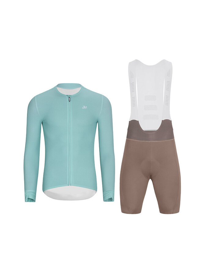 Cyklistický dlouhý dres a kalhoty - ELEVATE - hnědá/světle modrá