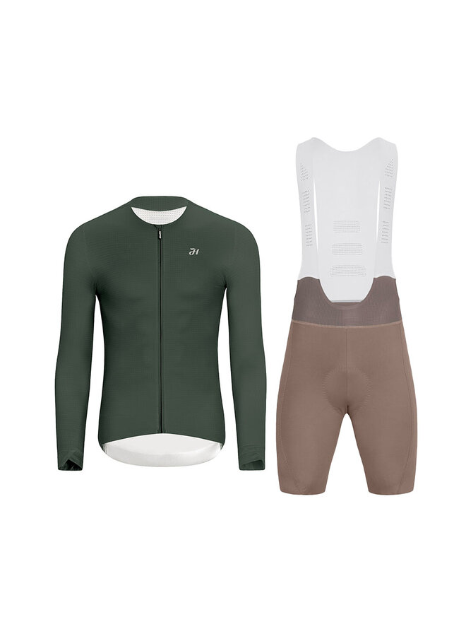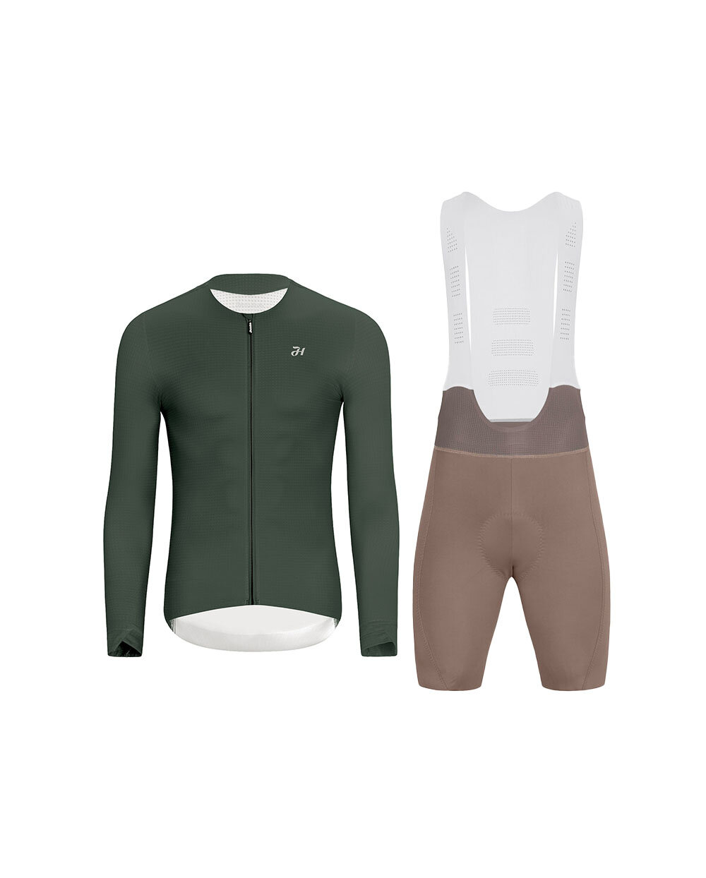 Cyklistický dlouhý dres a kalhoty - ELEVATE - hnědá/zelená