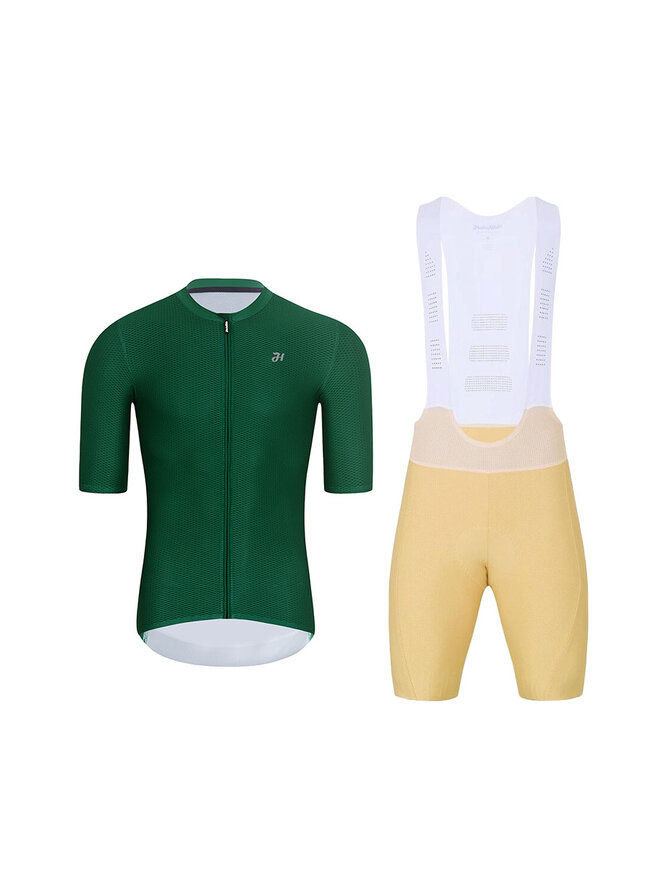 Cyklistický krátký dres a krátké kalhoty - AEROLITE - béžová/zelená