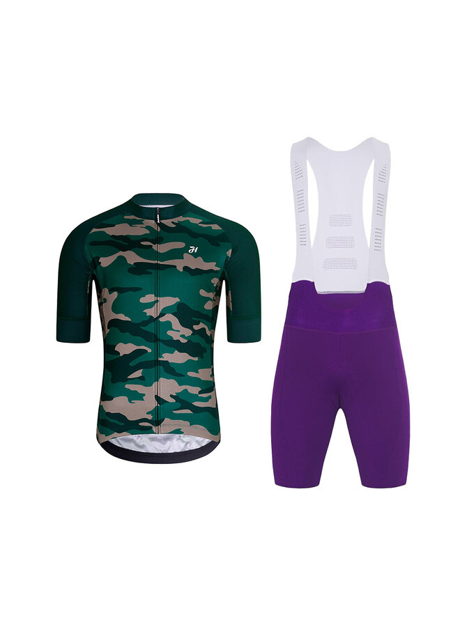 Cyklistický krátký dres a krátké kalhoty - CAMOTRAIL - fialová/zelená