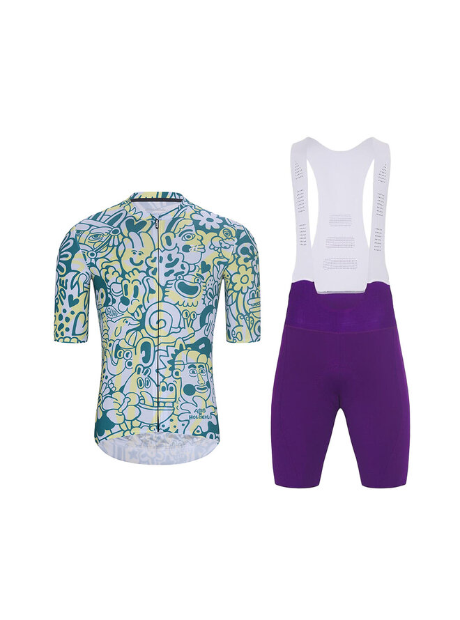 Cyklistický krátký dres a krátké kalhoty - COMIC - fialová/světle modrá