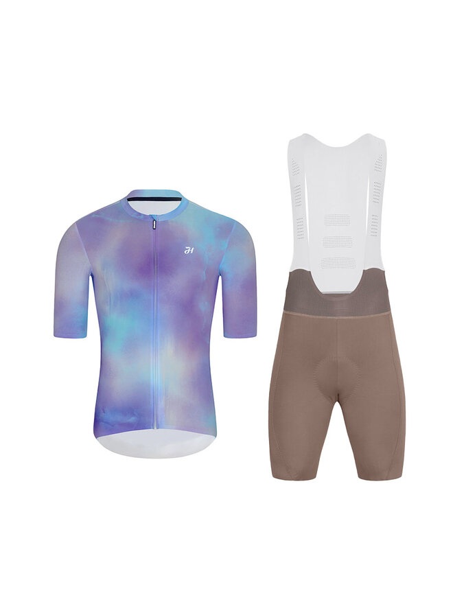 Cyklistický krátký dres a krátké kalhoty - COSMA - hnědá/světle modrá/fialová