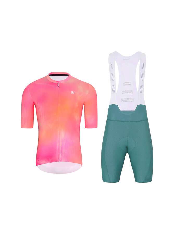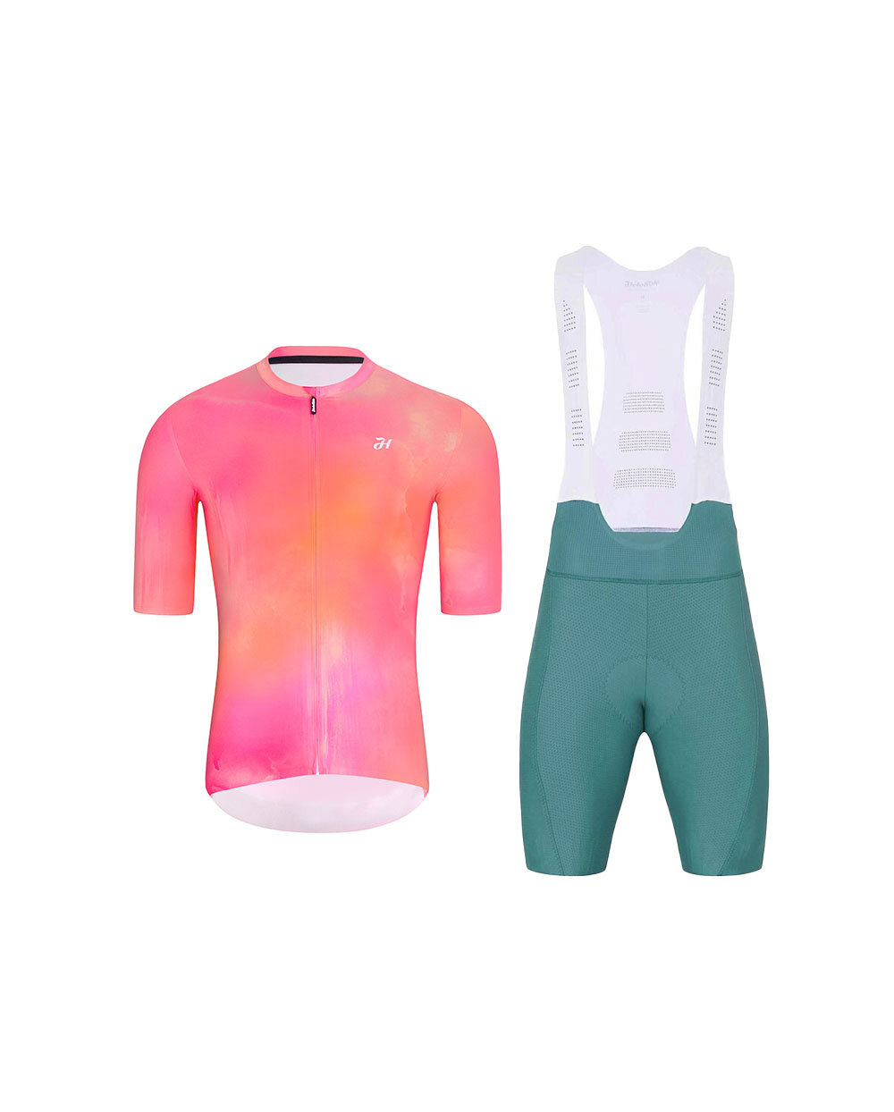 Cyklistický krátký dres a krátké kalhoty - COSMA - modrá/oranžová/růžová