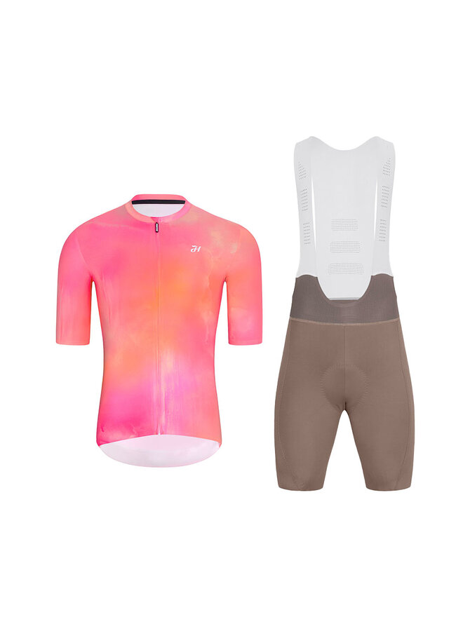 Cyklistický krátký dres a krátké kalhoty - COSMA - hnědá/oranžová/růžová