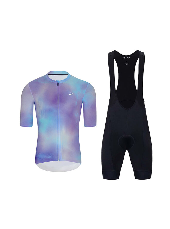 Cyklistický krátký dres a krátké kalhoty - COSMA - černá/světle modrá/fialová