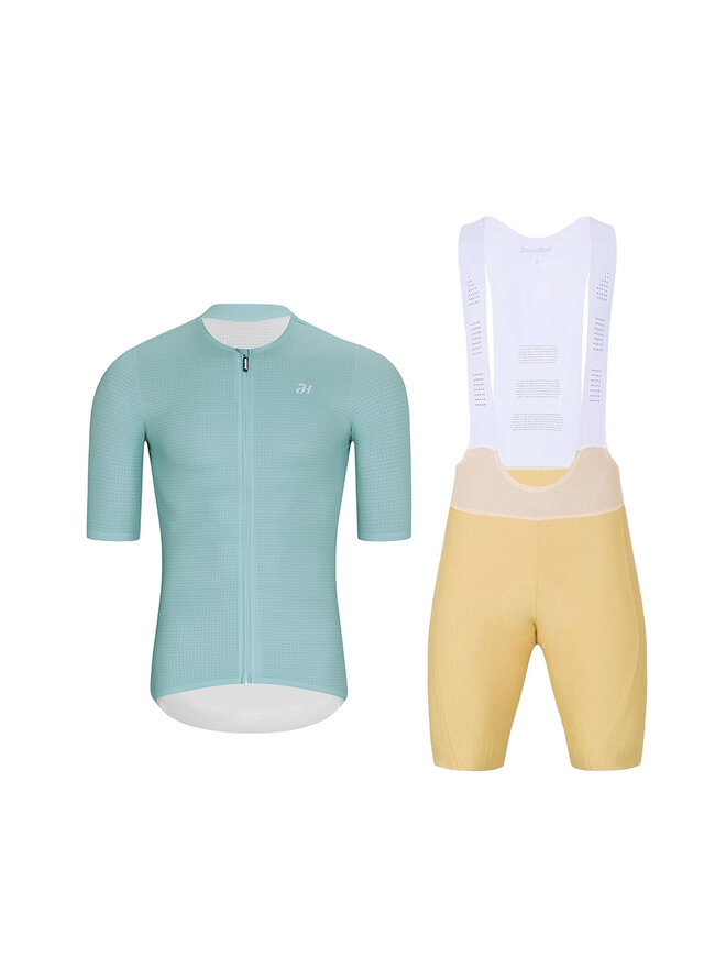 Cyklistický krátký dres a krátké kalhoty - ELEVATE - béžová/světle modrá