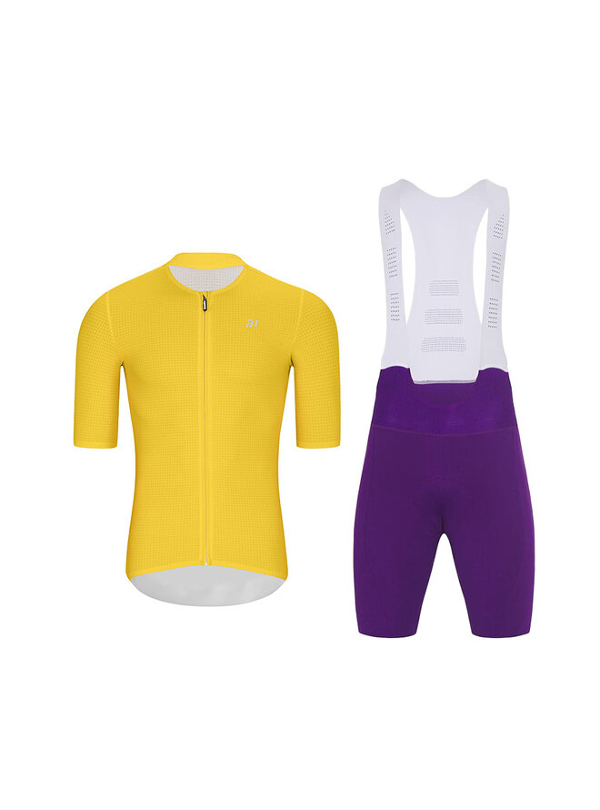 Cyklistický krátký dres a krátké kalhoty - ELEVATE - fialová/žlutá