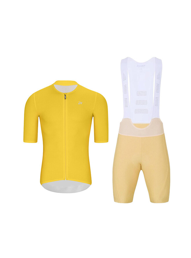 Cyklistický krátký dres a krátké kalhoty - ELEVATE - béžová/žlutá