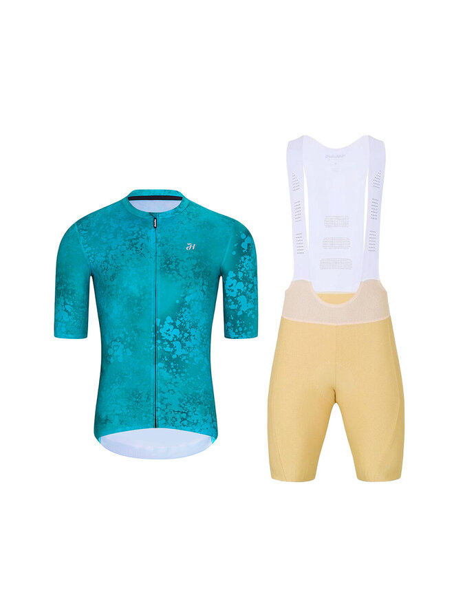 Cyklistický krátký dres a krátké kalhoty - RUSTLE - béžová/tyrkysová