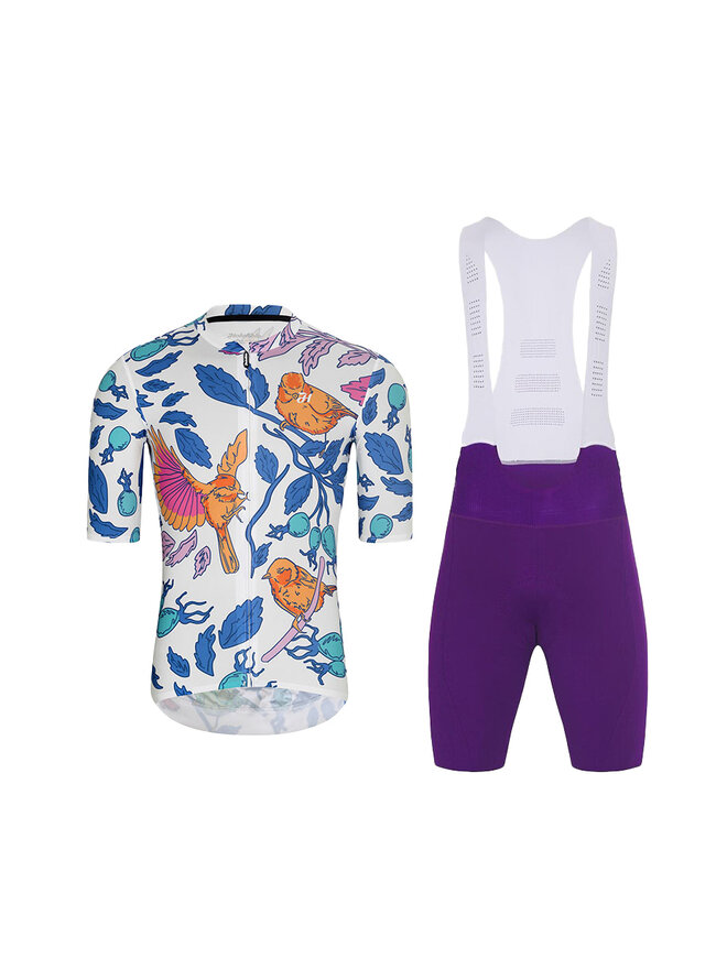 Cyklistický krátký dres a krátké kalhoty - SPARROVER - fialová/bílá/vícebarevná