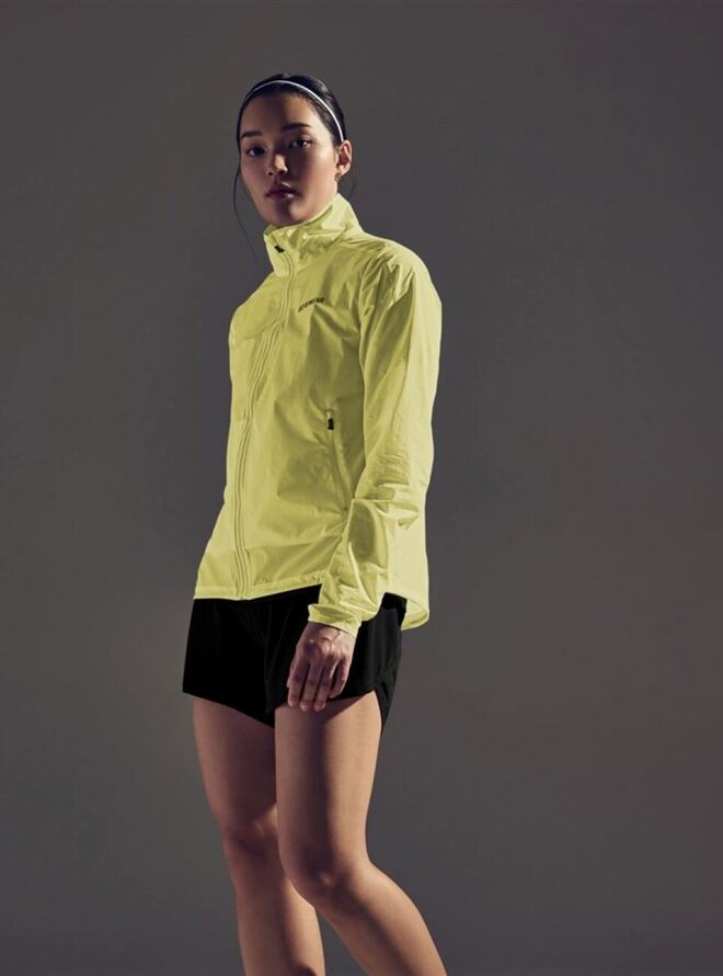 Dámská větrovka s povrchovou úpravou DWR dokonale odolnou vůči větru, chladnému počasí a lehkému dešti. Vnitřní tkaná úprava zaručuje odvod vlhkosti od pokožky a minimalizuje ulpívání látky na kůži, i když si oblečete pod větrovku jen tričko s krátkým rukávem, nebo tílko. VLASTNOSTI A MATERIÁLY Vnitřní 3D struktura tkaniny velmi dobře odvádí vlhkost od pokožky a zvyšuje tak komfort při běhu či jiných aktivitách Měkce podšitý, ergonomicky tvarovaný límec Elastické vložky na manžetách Přední zip po celé délce Dvě přední kapsy na zip Stahovací šňůrka na spodním lemu Reflexní detaily na manžetách, loktech, ramenou, v pase a uprostřed zadní strany Hmotnost: 142g Vyrobeno z částečně recyklovaného materiálu ve složení: 85% polyamid, 8% polyester, 7% elastanDetaily