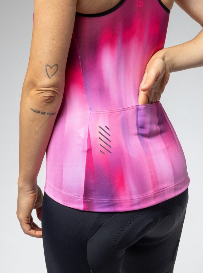 Ultralehký a mimořádně pohodlný top s maximální prodyšností PRAGMA CRAZY, ideální do horkého počasí. Sportovně elegantní design je navržen pro cyklistky a díky ergonomickému racer back střihu s čistě střiženými vsadkami zajišťuje naprostou volnost pohybu.