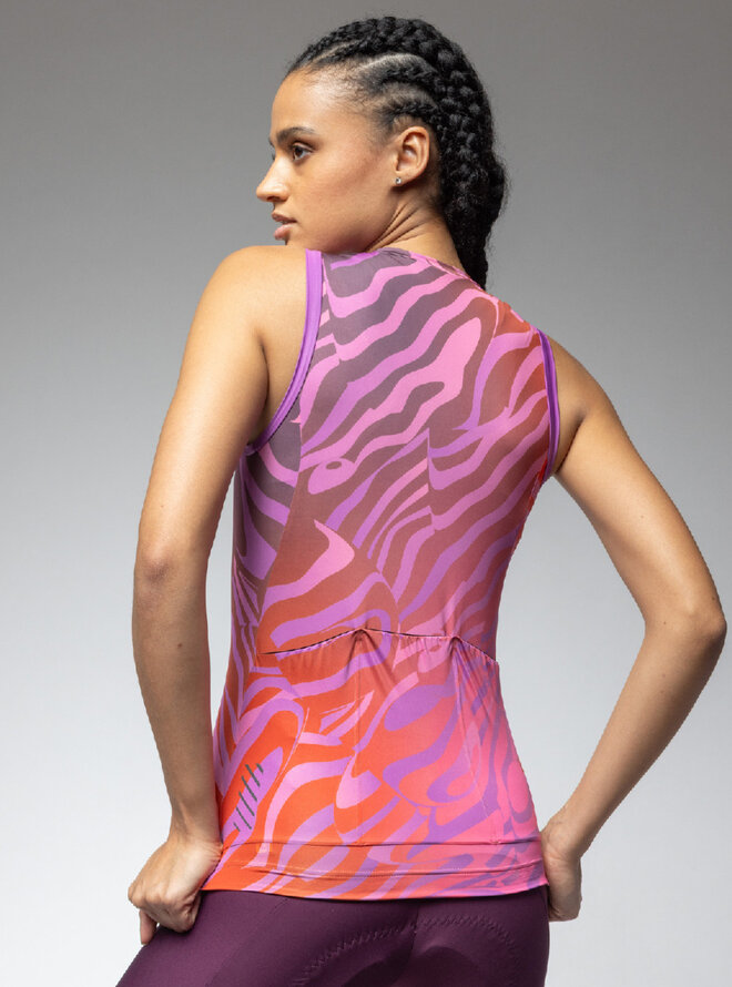 Dres PRAGMA SURFACE PR-E je jednoduchý a promyšlený dres s dámským bezešvým střihovým provedením bez rukávů. Jemný a prodyšný materiál efektivně odvádí vlhkost a reflexní prvky na přední části a zadních kapsách zajišťují viditelnost i za špatného světla. Pokud je u vás ekologie na prvním místě, budete mít velikou radost z jízdy v tomto dresu, pro jehož výrobu byly použity recyklované materiály.