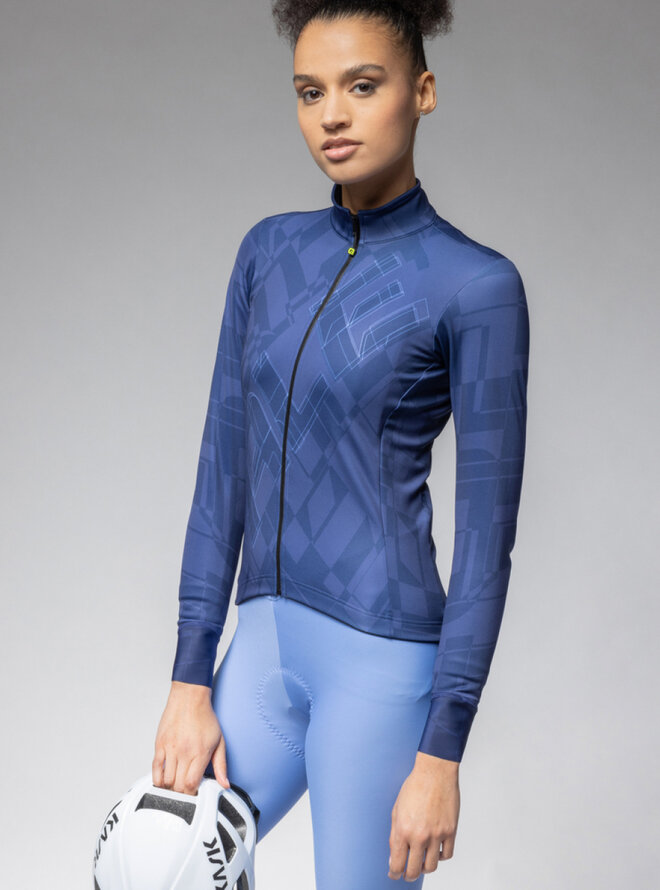 Cyklistický dres s dlouhým rukávem letní - PRAGMA SCHEMA - modrá