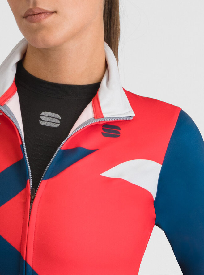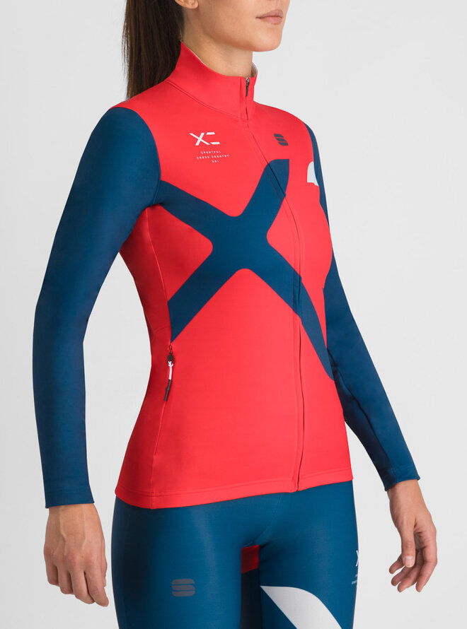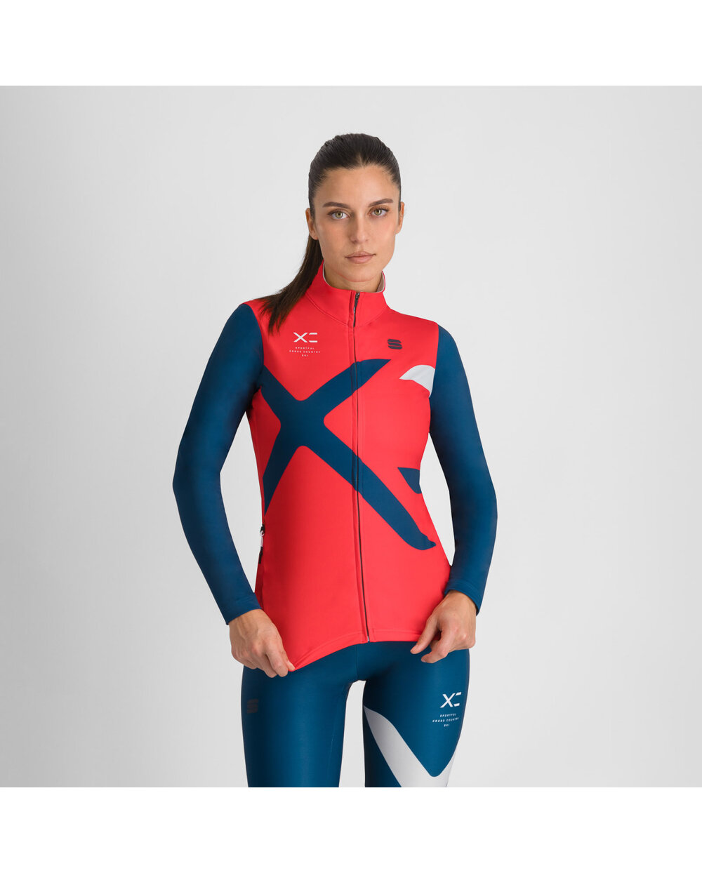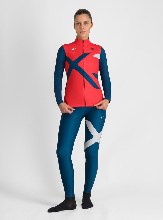 Cyklistický dres s dlouhým rukávem zimní - SQUADRA W - červená/modrá