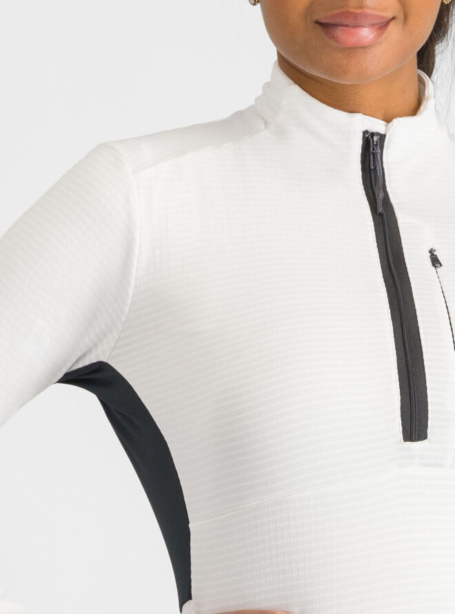 - Přední poloviční zip umožňuje regulaci ventilace a rychlé nastavení podle aktuálních podmínek a přispívá tak ke komfortu při delších trénincích.