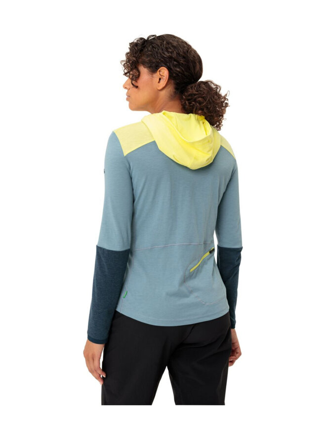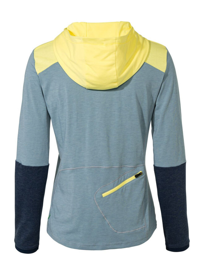 - 1 zadní kapsa s obráceným zipem, kapucí, plochými švy, barevný blok