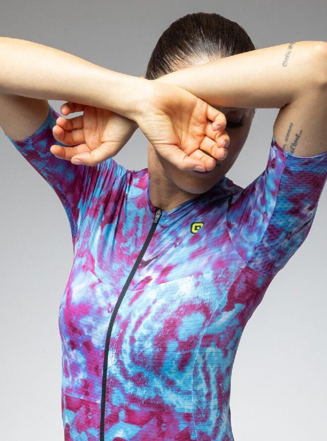 PR-E Clorofilla je lehký letní dres.Díky technologii Alé Body Mapping byl každý panel tohoto dresu strategicky umístěn tak, aby poskytoval skutečné pohodlí. Pro podtržení pocitu „druhé kůže“ je dres vybaven materiálem Rap Dry Carbon s propletenými uhlíkovými přízemi a ultralehkou tkaninou Micro Aero pro neustálou cirkulaci vzduchu, což vede k prvotřídnímu pohodlí o hmotnosti pouhých 110 gramů. Náš lehký systém S-Stability System ve spodní přední části dresu zaručuje bezchybné padnutí přes kraťasy. Vyvinuli jsme jej s inovativní konstrukcí zaměřenou na výkon a umístili jsme naši průlomovou tkaninu JET STRIPES na rukávy, abychom minimalizovali odpor vzduchu, s velmi nízkým objemem, obousměrnou pružností a 3D efektem kanálků, který zlepšuje aerodynamiku.