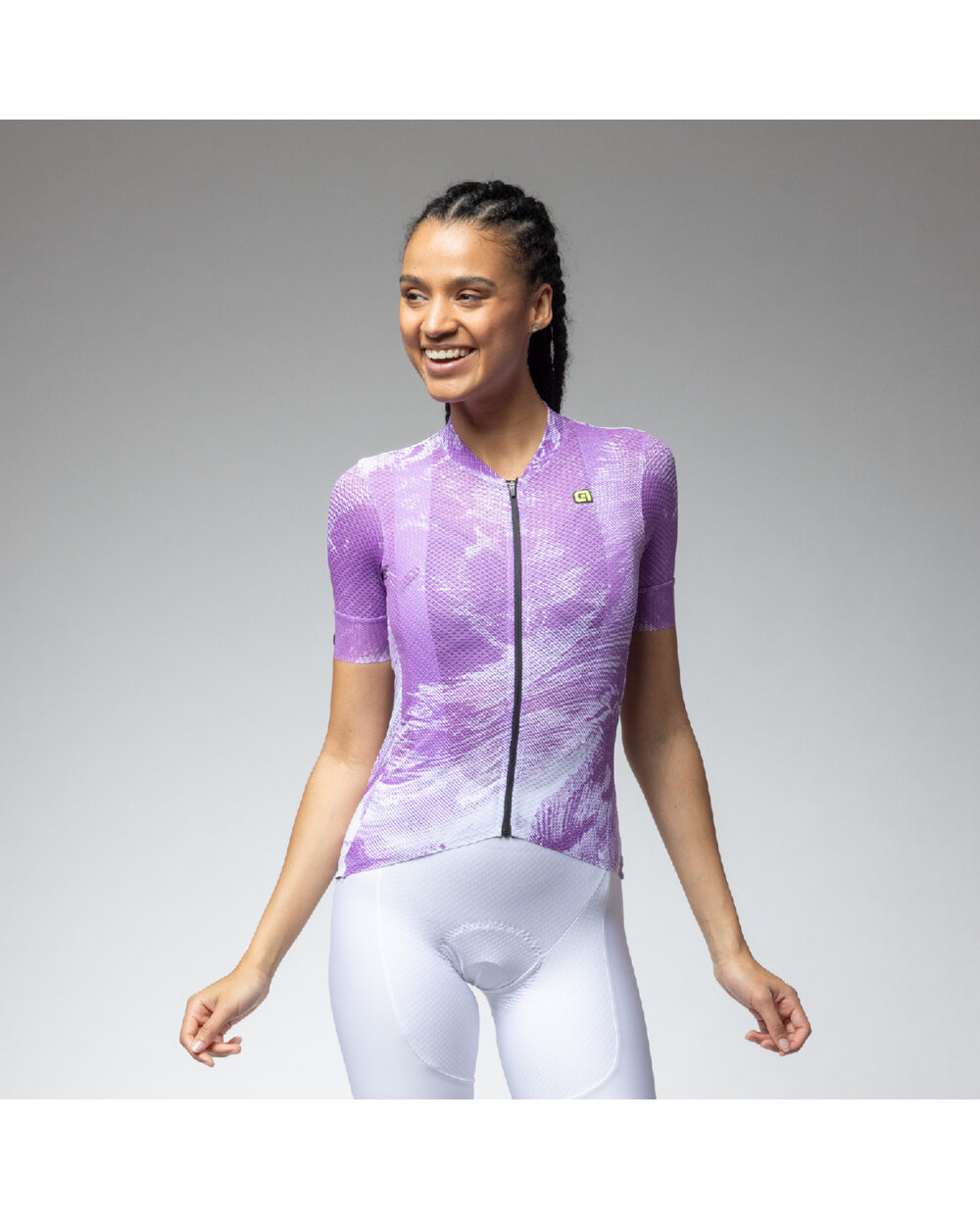Cyklistický dres s krátkým rukávem - PR-E FAN - bílá/fialová