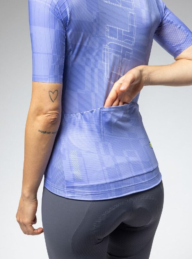 Každá část dresu PR-E Schema byla navržen tak, aby vytěžila maximum z každé použité látky. Je vyroben z tkaniny Rap Dry Carbon s propletenými uhlíkovými přízemi, ultralehké tkaniny Micro Aero pro cirkulaci vzduchu a síťoviny Piuma v podpaží pro prodyšnost, což vede k prvotřídnímu pohodlí o hmotnosti pouhých 100 gramů. Systém S-Stability ve spodní přední části dresu zaručuje optimální padnutí. Všité rukávy s nepodšitým střihem.