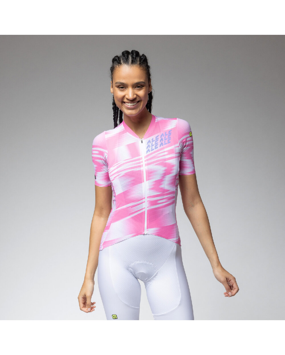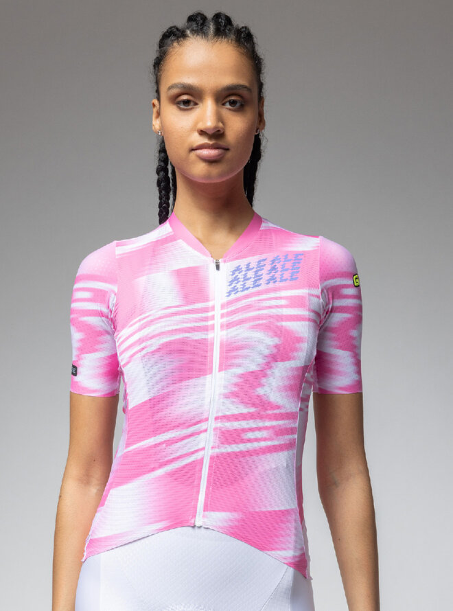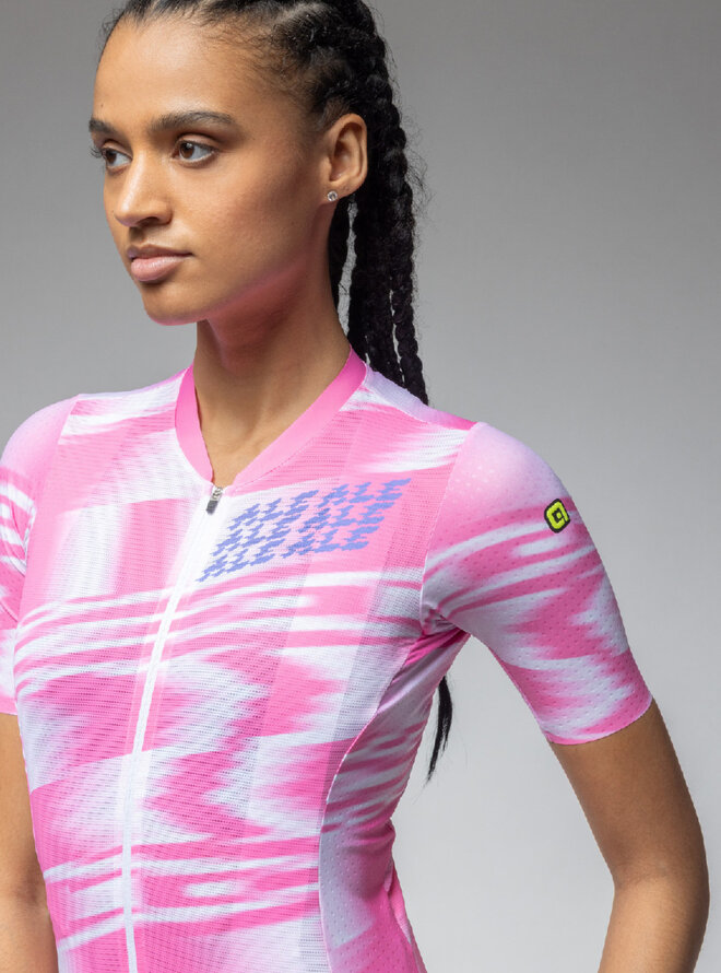Cyklistický dres s krátkým rukávem - TECHNO PR-E - růžová/bílá