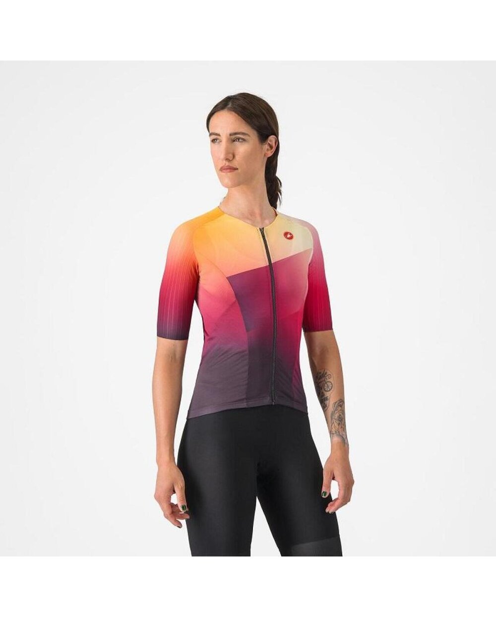 Dnes skoro každý závodí v sadě s krátkými rukávy. Zatímco kombinézy jsou nyní normou, stále existují argumenty ve prospěch dvoudílné sady, zejména pokud chcete střídat mezi disciplínami nebo chcete minimalizovat čas strávený v přechodové zóně. Tento dres kombinuje všechny výhody kombinézy s krátkým rukávem s všestranností topu a vašich oblíbených šortek. Revoluční design ramen a rukávů je ukázkou Castelli DNA, což je zlepšení výkonu a aerodynamiky, podpořené nesčetnými CFD simulacemi a testy v aerodynamickém tunelu. Aerodynamika je zásadní, ale nechcete kvůli ní obětovat pohodlí. Struktura dresu je přizpůsobena všem třem disciplínám a jemné materiály s dobrou prodyšností a UV ochranou umocní váš závodní zážitek. Detaily, jako jsou dvě dostatečně velké zadní kapsy na sportovní výživu, nebo systém Castelli SnapLock, kterým můžete top upevnit na triatlonové kraťasy Castelli, zaručují, že nemusíte nic obětovat, když upřednostníte dvoudílný komplet před kombinézou.