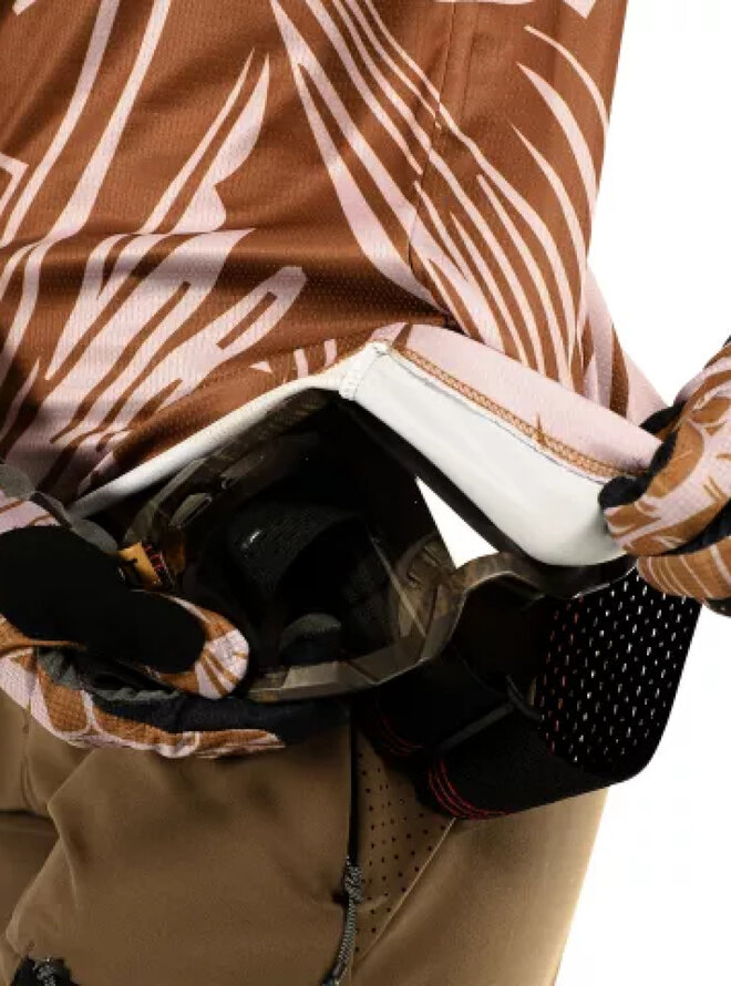Jersey, který funguje skvěle během teplejších dnů, díky tkanině Iceyarn s přirozeným chladicím efektem a laserem vyřezávané větrání. Sportovní pravidelný střih umožňuje nosit tenké chrániče pod dresem. Rukávy jsou o něco delší a končí těsně nad podpaží. Malá kapsa s látkou z mikrovlákna vám umožňuje snadno a rychle vyčistit brýle nebo sluneční brýle.