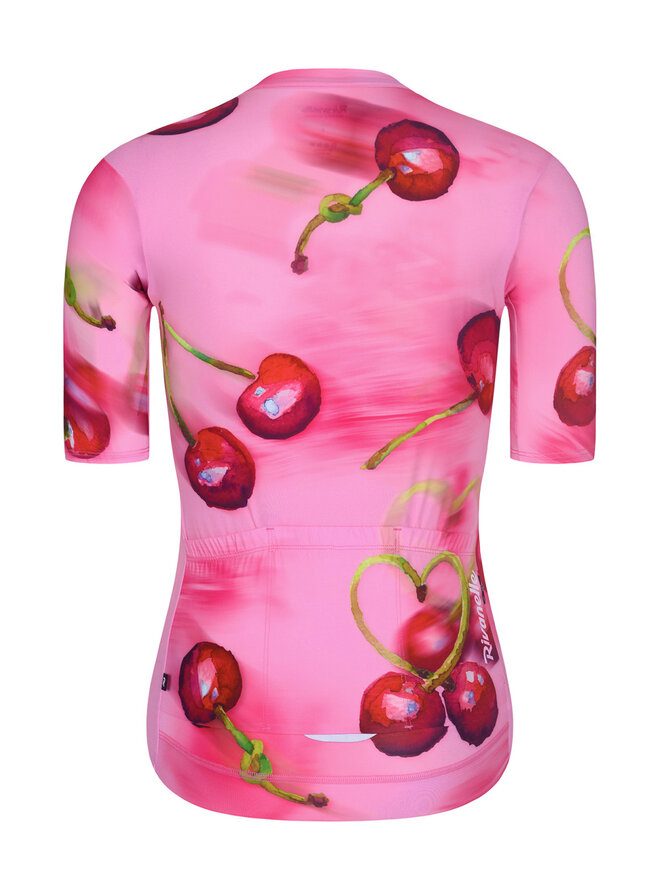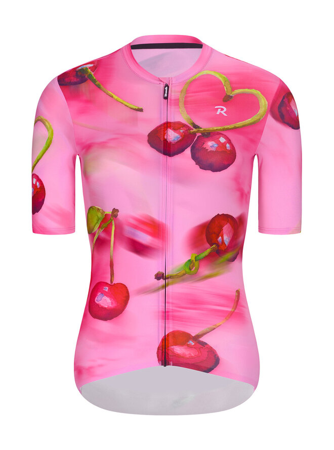 Chere není jen dres – je to nálada – sladkost léta a ženskost. Ručně ilustrované třešně, které se na látce míhají v pohybu – přesně jako vy na cestě. Detail ve tvaru srdce z třešňové stopky je nenápadným, ale hravým podpisem lásky k cyklistice.
