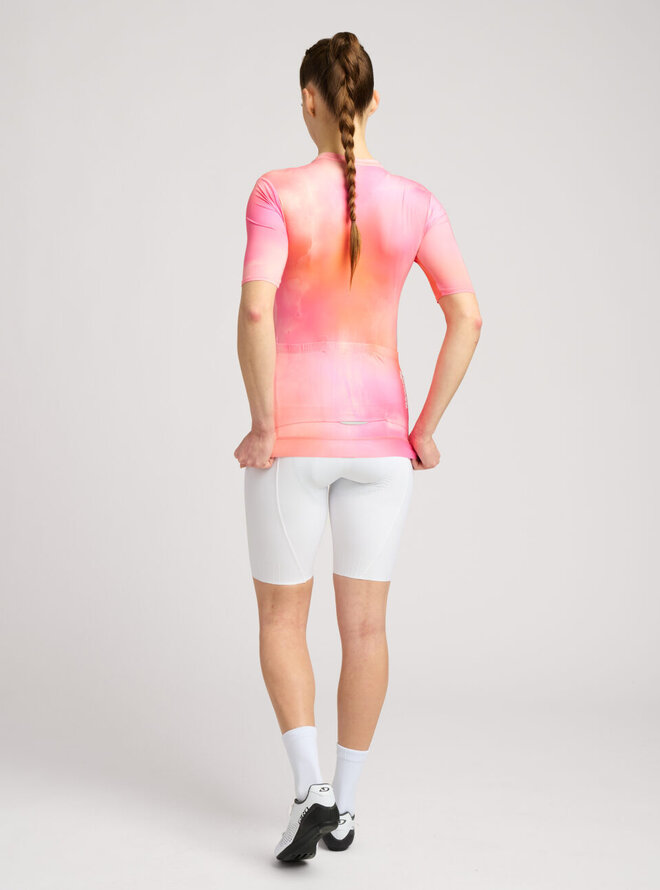 Lehká vysoce kvalitní tkanina, která je velmi příjemná na těle, mimořádně vzdušná, chladivá a měkká. Díky dobré elasticitě se přizpůsobí každé postavě a zároveň uhlazuje její kontury nebo nedostatky. Dres je plný praktických funkcí a každý detail je navržen s ohledem na vaše pohodlí. Celoplošný přední zip s ochranným překrytím krku. Trojitá kapsa s bezpečnostní kapsou na zip. Bezešvý lem s protiskluzovým potiskem v zadní části dresu.