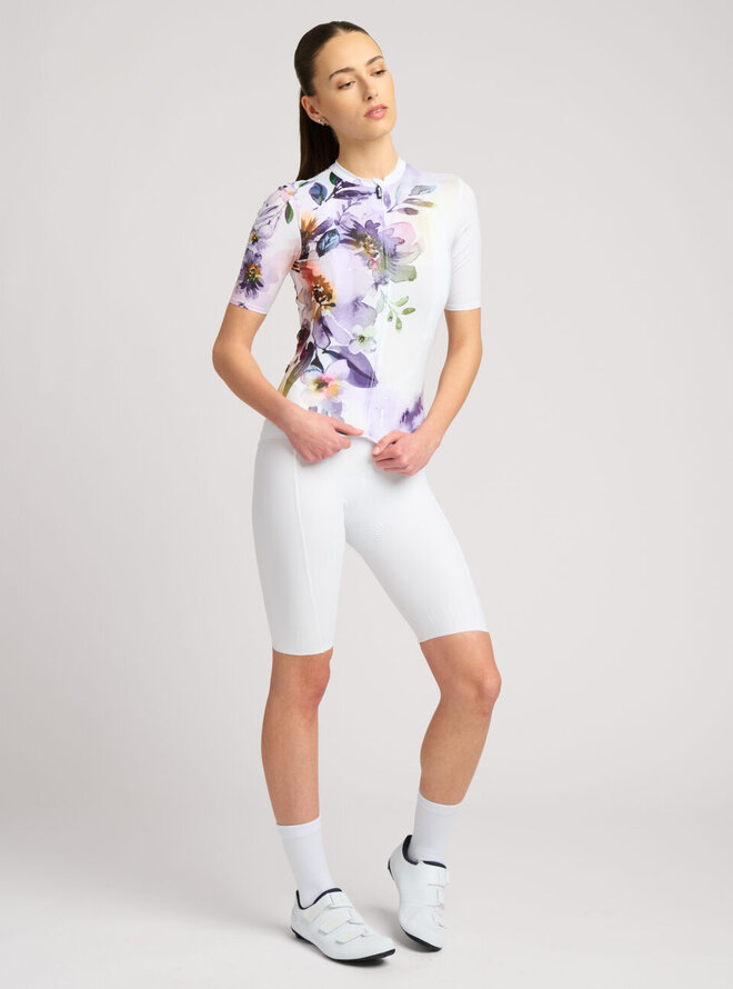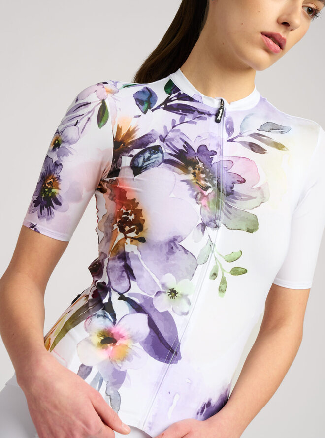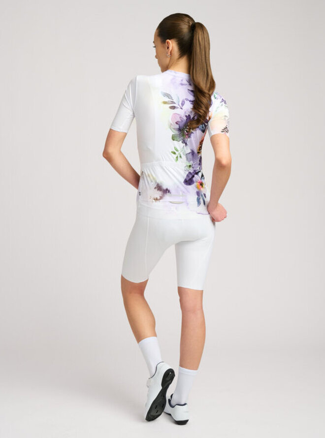 Cyklistický dres s krátkým rukávem - FLOWERY LADY - bílá/vícebarevná
