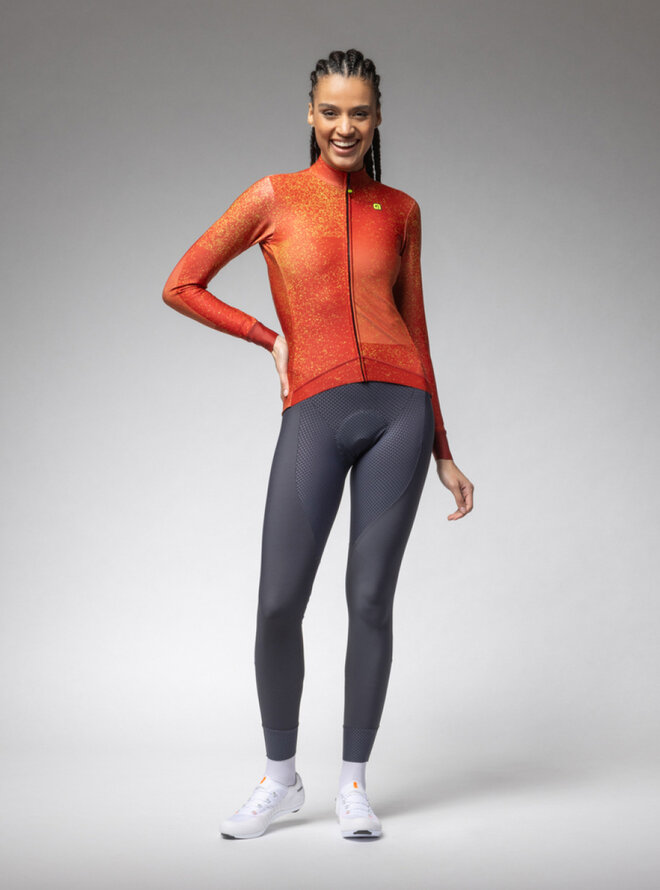 Cyklistický dres s dlouhým rukávem zimní - PR-E STELLAR LADY - červená