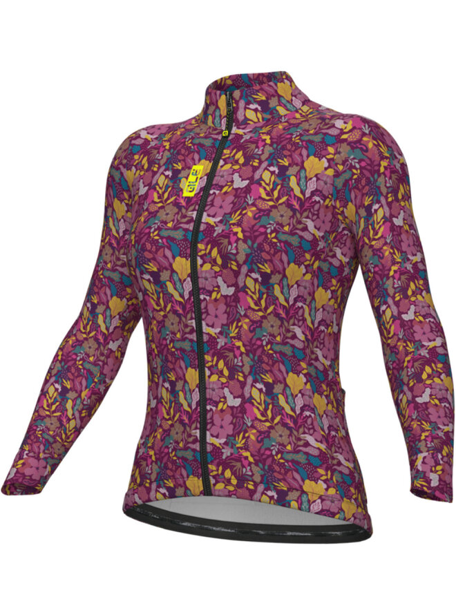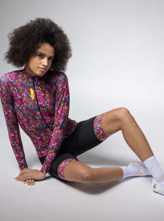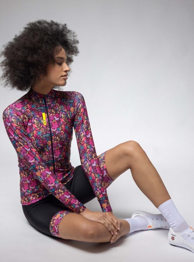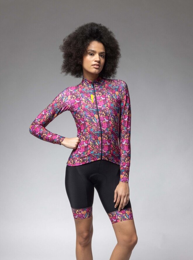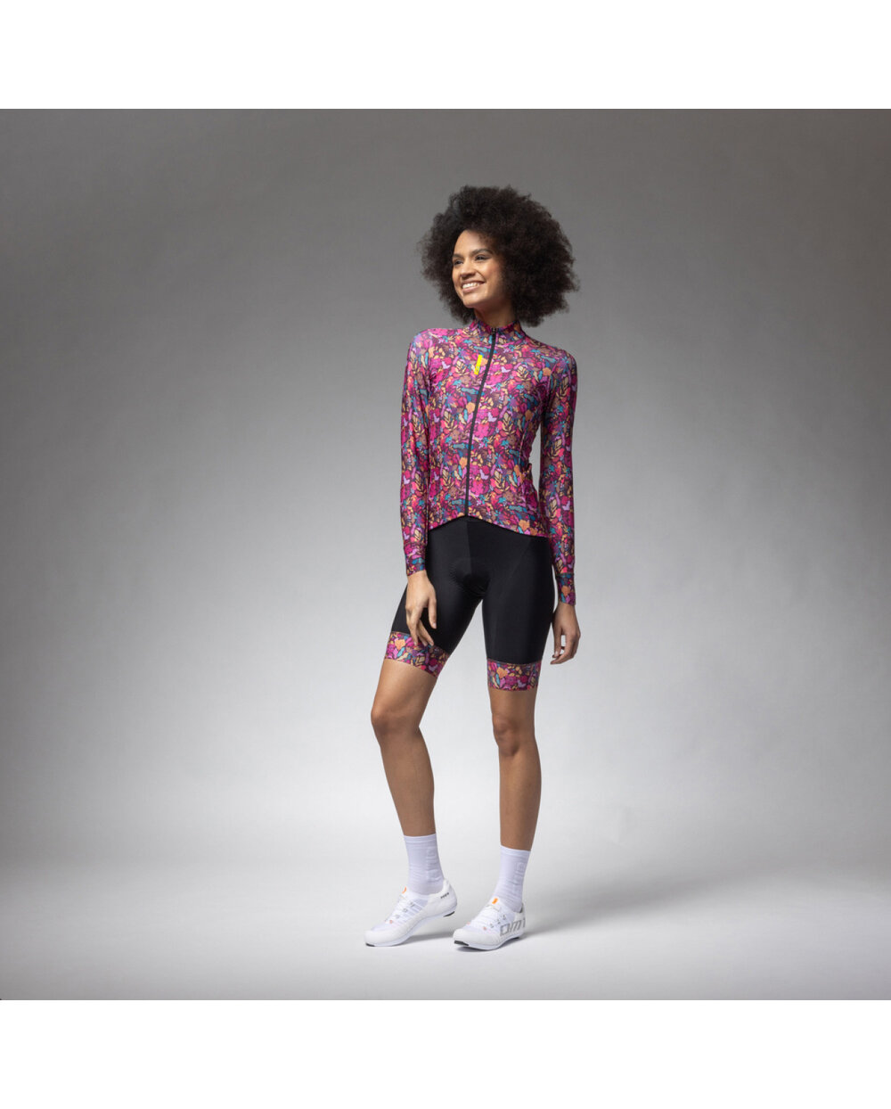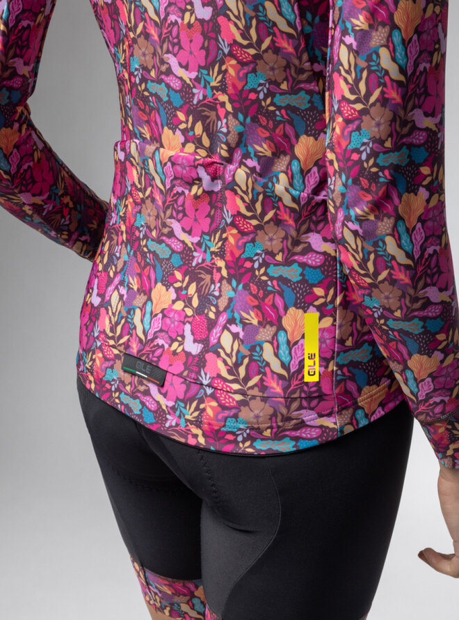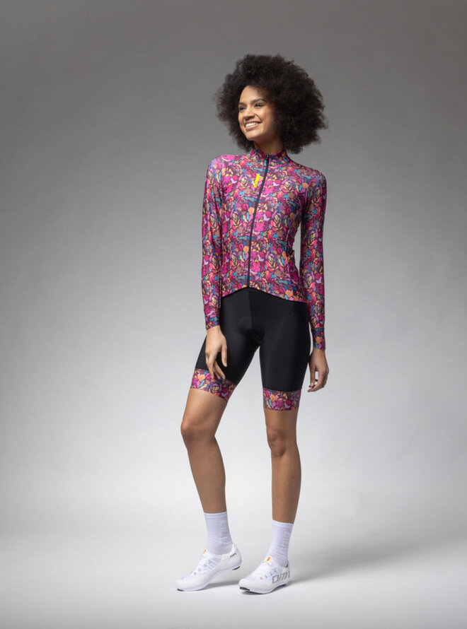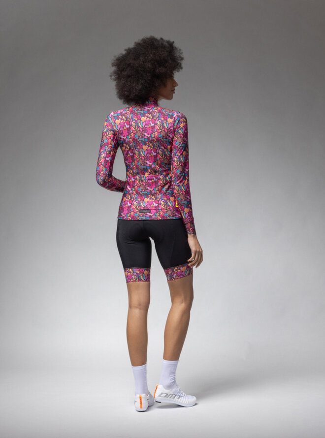 Cyklistický dres s dlouhým rukávem zimní - PRAGMA FLOWERY LADY - růžová/vícebarevná