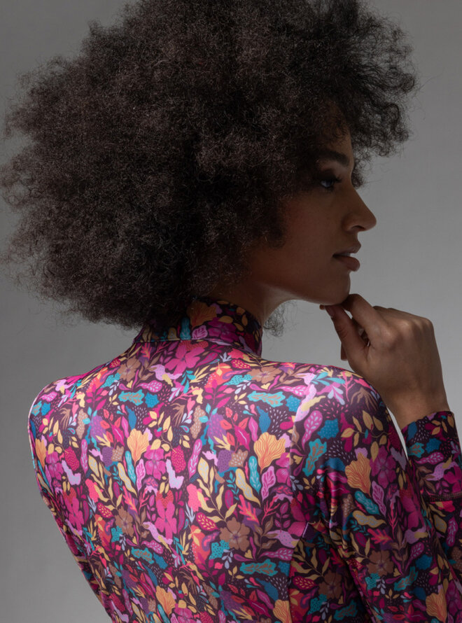 FLOWERY LADY je dámský dres v ekologické verzi, vyrobený z recyklovaných přízí certifikovaných podle Global Recycle Standard (GRS). Materiály s nízkým dopadem na životní prostředí zajišťují funkčnost, prodyšnost a pružnost, takže se dres dokonale přizpůsobí tělu a podpoří volnost pohybu.