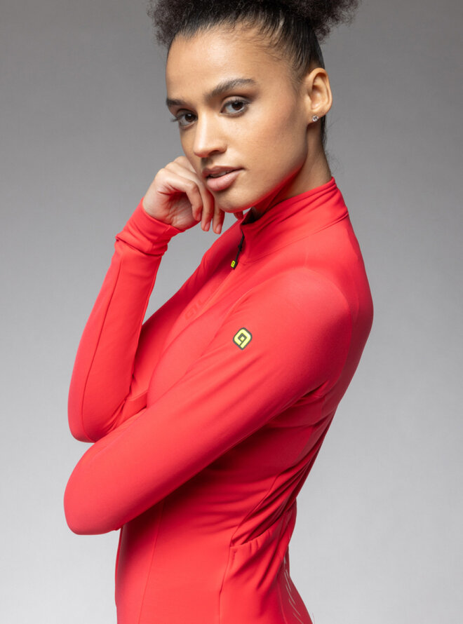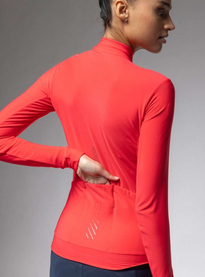 Cyklistický dres s dlouhým rukávem zimní - PRAGMA FONDO 3.0 LADY - červená