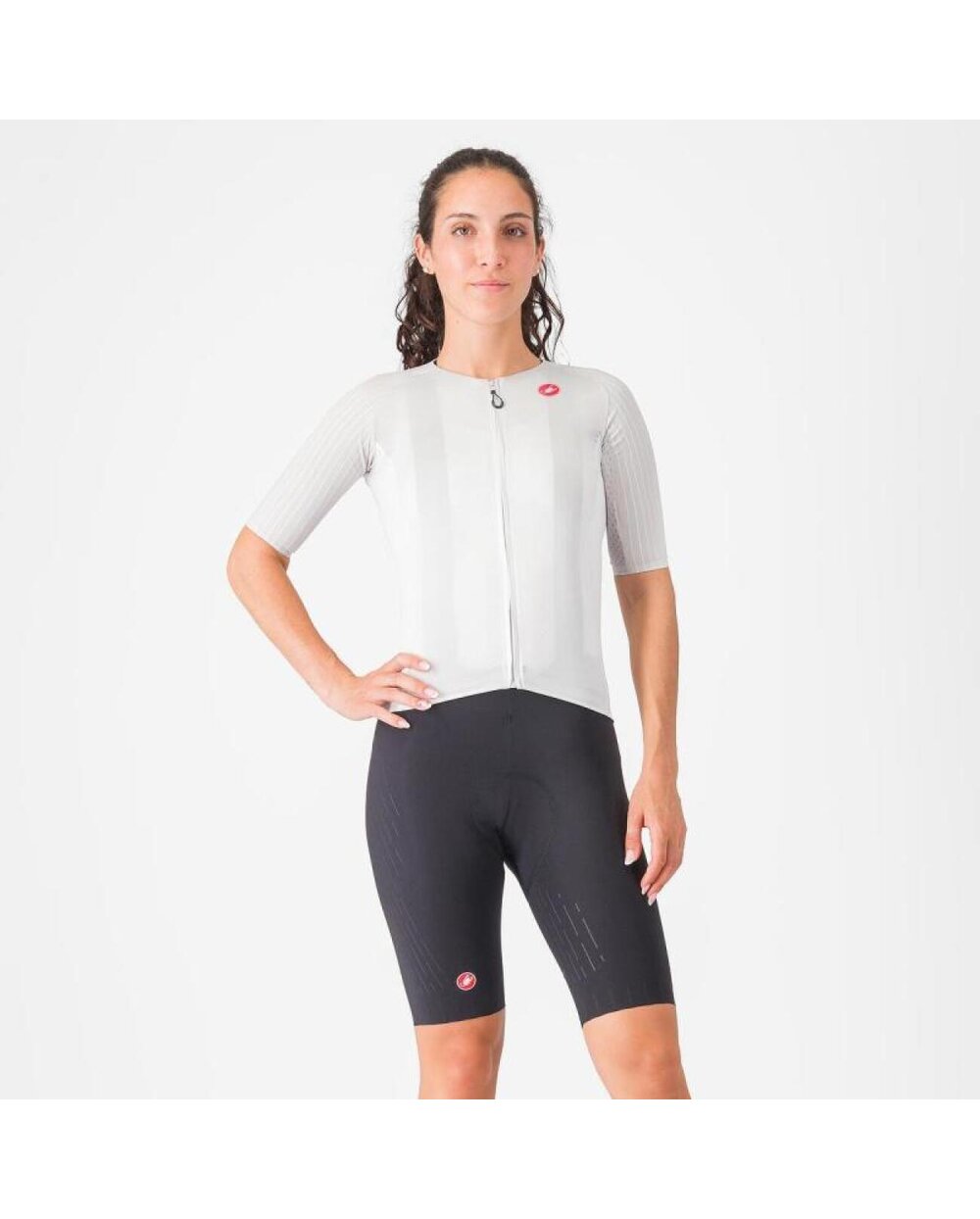 Šortky bez ramínek Free Aero Race S W byly vytvořeny tak, aby splňovaly požadavky výkonnostních cyklistů, ať už jde o trénink na jejich oblíbeném okruhu nebo nejnáročnější závody světa. Když nasednete na kolo, první věc, kterou od svých kraťasů očekáváte, je pohodlí. Materiál Forza2 Stretch je elastický a přizpůsobí se tělu bez stahování, takže se pohybuje při každém kroku. Silikonové aplikace na konci kalhot udrží kalhoty na místě. Samozřejmě jsme použili naši vložku Progetto X2 Air Seamless Donna, abyste se cítili pohodlně i při těch nejdelších trénincích. V moderním světě výkonnostní cyklistiky se aerodynamika rychle stala jedním z klíčových prvků. Nespočet hodin v aerodynamickém tunelu nám pomohl snížit koeficient CdA o 3 %, což z nich udělalo dosud nejrychlejší verzi kraťasů Free Aero Race. To znamená, že můžete využít každý šlapaný watt k rychlejší jízdě