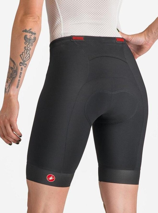 CO TO JE / VLASTNOSTI PRODUKTU Pohodlí a všestrannost pro sportovce, kteří závodí ve dvoudílné sadě, ideální pro náročný intervalový běžecký trénink.Vložka KISS Tri je na kole pohodlná a při běhu ji téměř necítíte Stahovací šňůrka v pase Ploché švy Zadní kapsa na sportovní výživu Zapínání v pase na patentky SnapLock, ke kterému lze připnout dres Giro 3 lem nohavic Ochranný faktor UPF 50+ Barvy: 010 černá Velikosti: XS-XL Hmotnost: 142 g<1br>40° Teplotní rozsah: závodní šortky, které se hodí k vašemu Castelli dresu, ať už jedete závodit nebo vás čeká těžký trénink. Skvělý střih, rychleschnoucí materiál a zapínání na SnapLock pro upevnění dresu, aby se nevyhrnoval, jsou klíčové vlastnosti těchto kraťasů. Skrytá zadní kapsa je dostatečně velká na gel, tyčinku, klíče nebo kreditní kartu. Lemy kalhot GIRO3 udrží kalhoty na místě a naše osvědčená vložka KISS Tri je dalším důvodem, proč si tyto šortky zamilujete na trénink nebo závody.