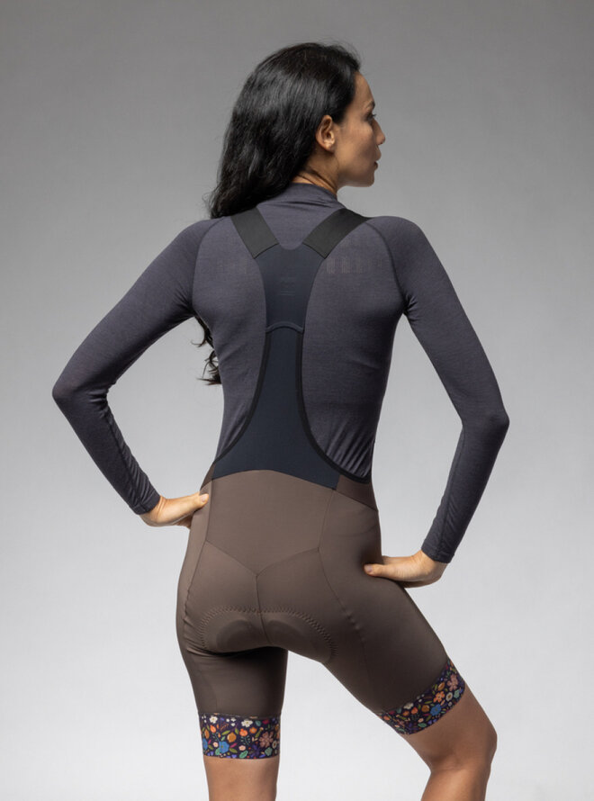 Hike Lady Bibshorts jsou univerzální dámské cyklistické kraťasy z recyklovaných vláken, které oceníte při náročných trénincích v chladnějším počasí. Lze je ideálně kombinovat s návleky na nohy pro zvýšení ochrany a tepelný komfort.