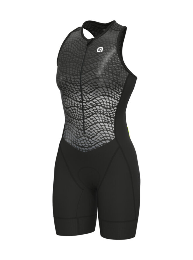 TRIATLONOVÁ KOMBINÉZA NAVRŽENA PŘÍMO TRIATLONISTY. Triatlonová kombinéza bez rukávů ALÉ DIVE TRIATHLON je ušita z voděodpudivé látky, která se ve vodě zrychluje. Zadní panely a kapsy jsou vyrobeny z naší tkaniny Mesh Dragon, která je velmi prodyšná. Zadní kapsy pak mohou uchovat vaše energetické tyčinky pro cyklistickou a běžeckou část závodu.- Vhodné pro teploty od 10° do 30°C.