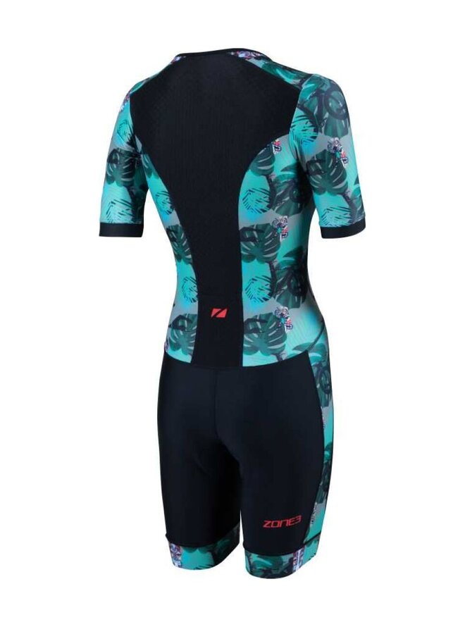 Dámská triatlonová souprava Zone3 Activate+ s krátkým rukávem je vysoce výkonný triatlonový oblek určený pro atletky, které chtějí spolehlivý výkon, pohodlí a stylový design během tréninku i závodů. Tento model patří do řady Activate+, která kombinuje vysoce kvalitní materiály, technické detaily a ergonomický střih vhodný pro všechny tři triatlonové disciplíny - plavání, cyklistiku i běh. Přední panely a kalhoty jsou vyrobeny z recyklovaných funkčních tkanin, které poskytují optimální přizpůsobení, odvod vlhkosti a rychlé schnutí, zatímco zadní panel ze síťoviny zvyšuje prodyšnost a pohodlí během intenzivního tréninku. Krátké rukávy zajišťují lepší krytí a aerodynamiku bez omezení pohybu. Tri-suit je vybaven ergonomicky umístěnou vložkou Tri-Lite, která poskytuje komfort při jízdě na kole bez omezení při běhu nebo plavání. Silikonové úchyty drží kalhoty pevně na svém místě, přední zip umožňuje snadné oblékání a regulaci ventilace a zadní elastická kapsa nabízí praktický prostor pro energetické gely nebo drobnosti během závodu.Detaily