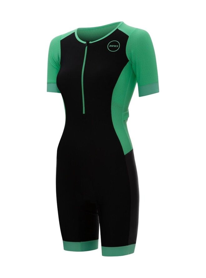 Dámský trikot s krátkým rukávem Aquaflo Plus Zone3 je funkční triatlonový dres navržený pro maximální pohodlí, výkon a styl během tréninku i závodů. Díky krátkým rukávům nabízí lepší aerodynamiku na kole a zároveň chrání ramena před sluncem. Materiál Aquaflo Plus je lehký, pružný a rychleschnoucí, což zajišťuje vynikající odvod vlhkosti a příjemný pocit po celou dobu závodu. Trisuit má anatomický střih, který se dokonale přizpůsobí ženskému tělu a neomezuje v pohybu při plavání, jízdě na kole ani běhu. Integrovaná cyklistická vložka poskytuje potřebné pohodlí na kole, aniž by při běhu překážela.Detaily