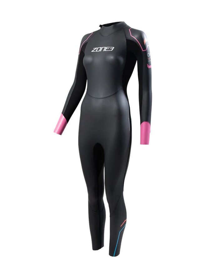 Neoprén je vybaven snadno použitelným YKK zipem, který usnadňuje nazouvání a svlékání, a neonovými manžetami na rukávech pro lepší viditelnost ve vodě. Lepené, slepě šité a ploché švy zdůrazňují flexibilitu a odolnost obleku při častém používání.